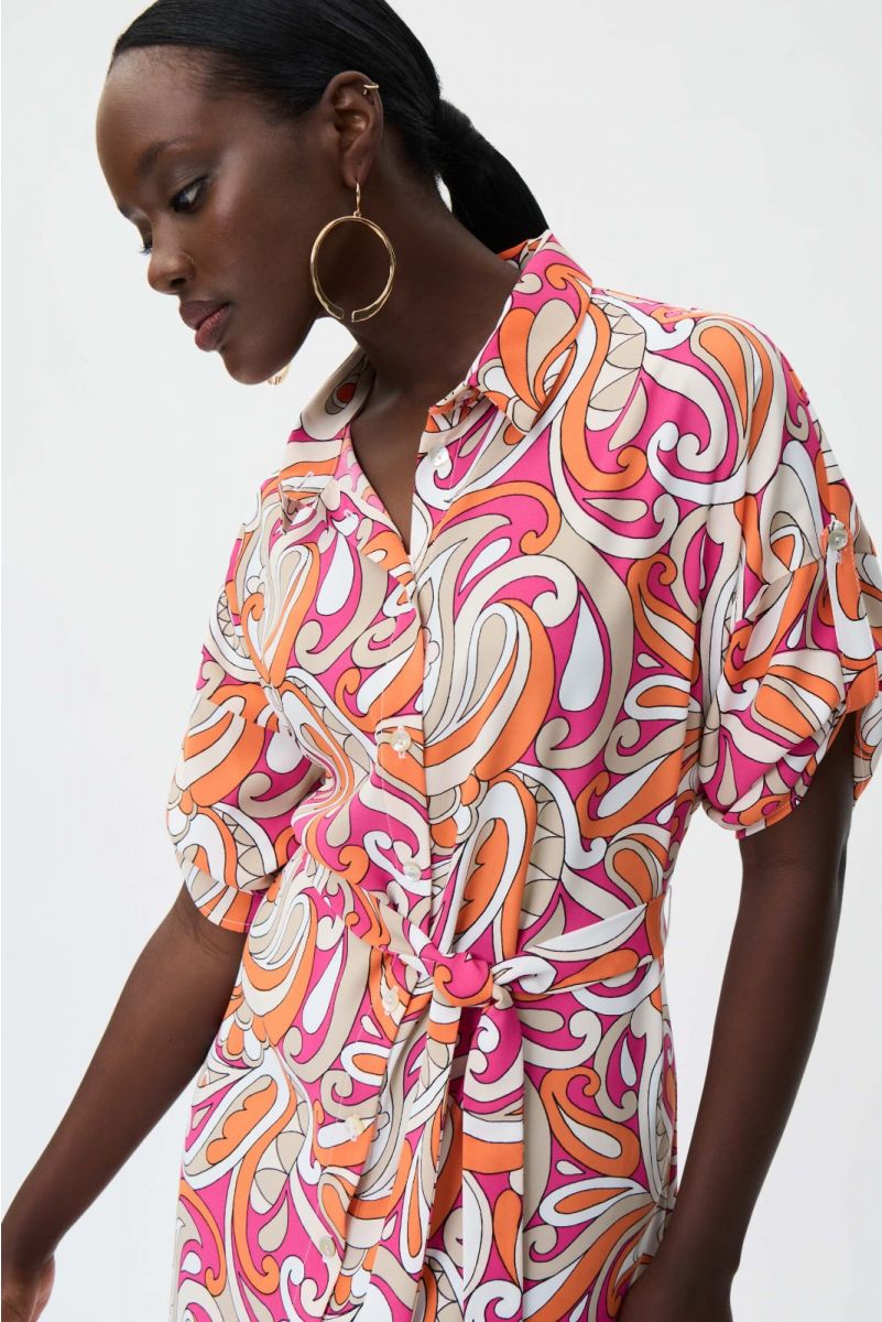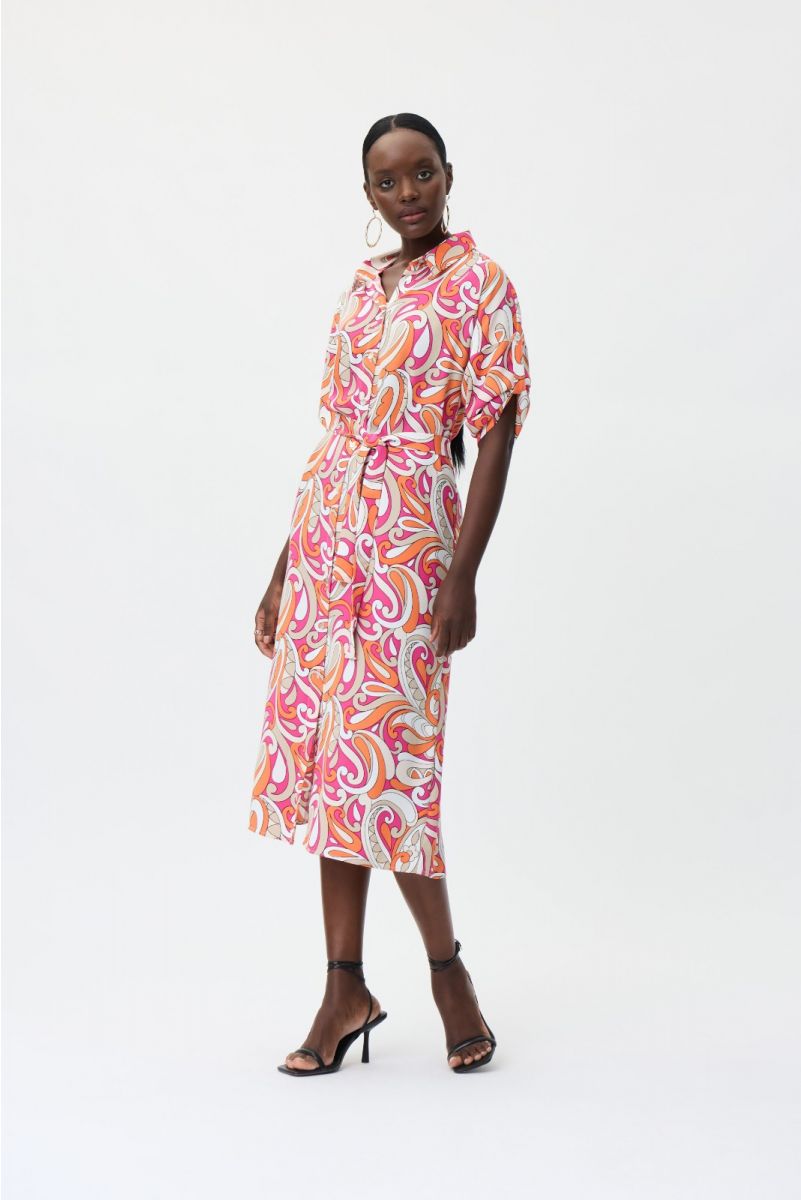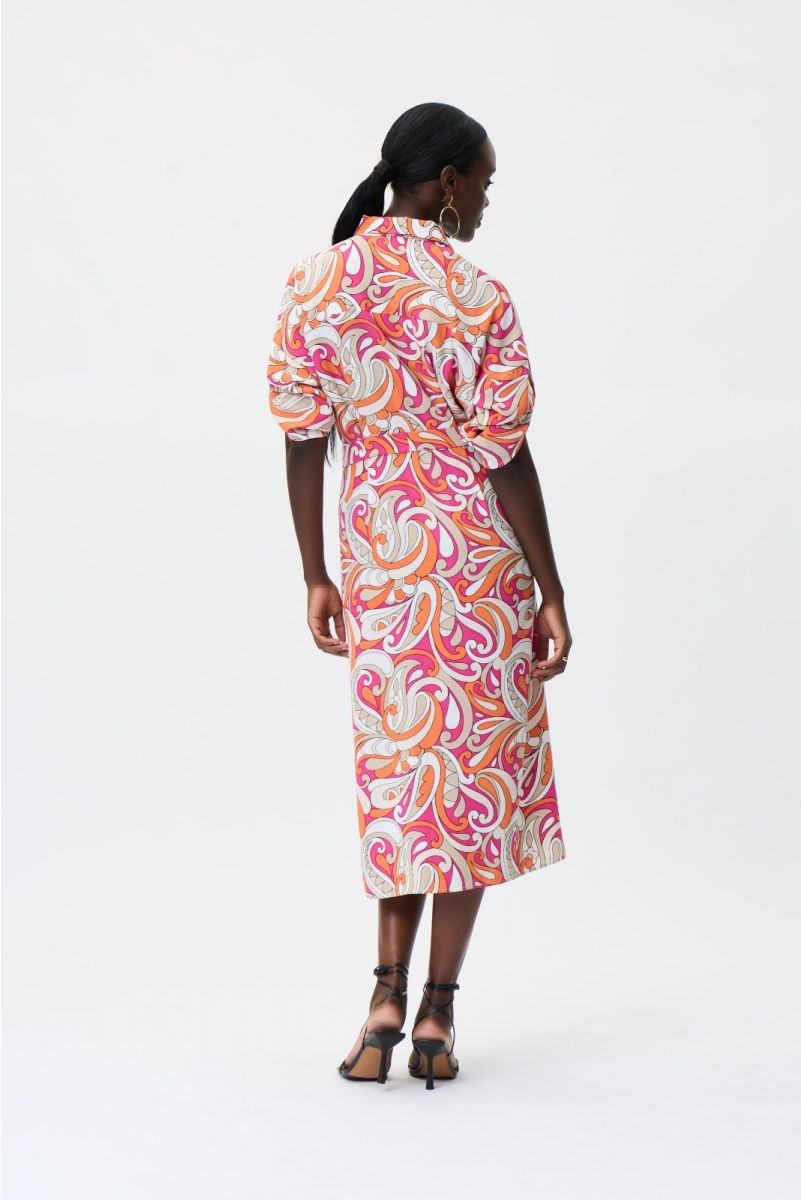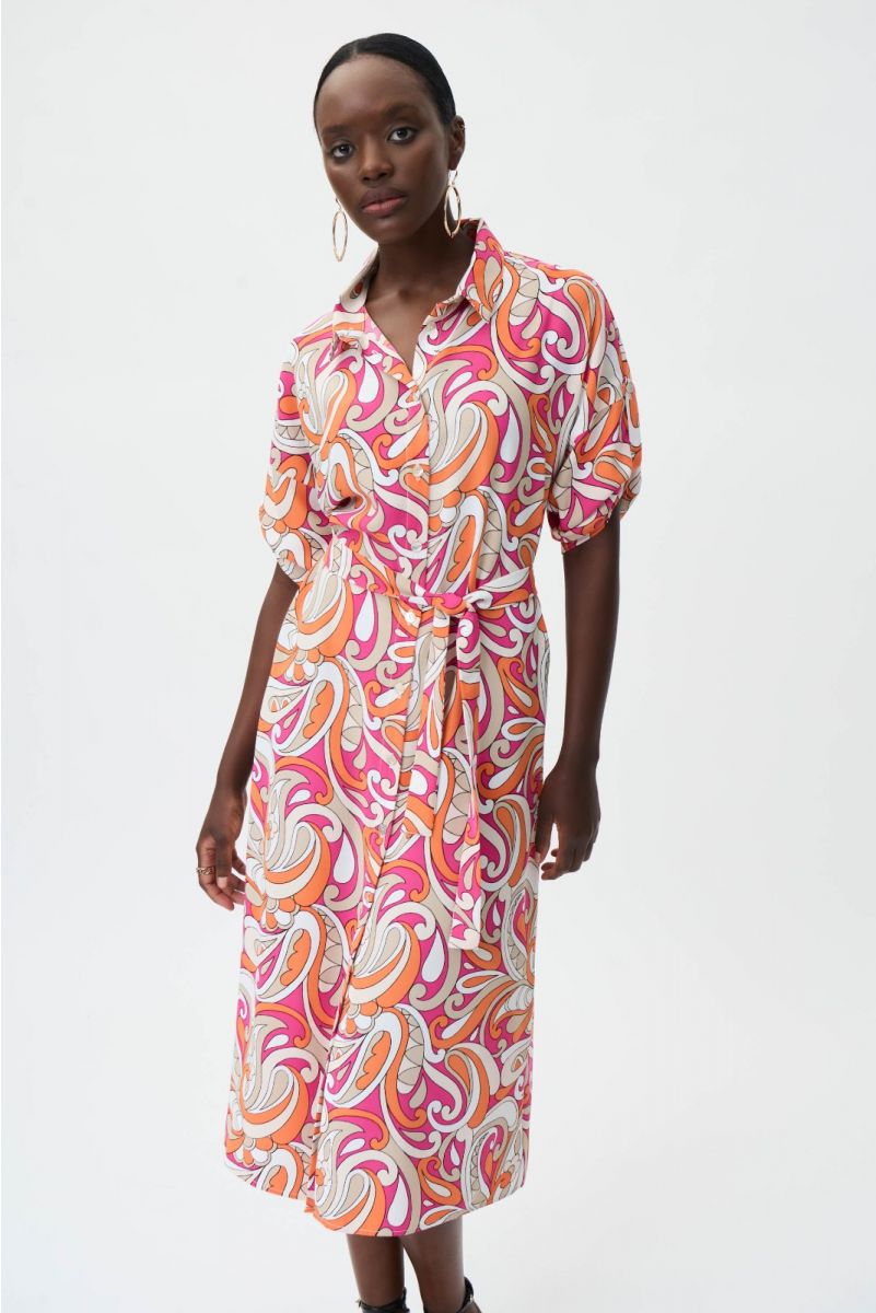 Sitting halfway down the calves, this vintage-inspired dress is bolder than it initially lets on. It is made from soft woven material and features a shirt collar. Three-quarter dolman sleeves and a sash waistband add further personality to this retro dress.