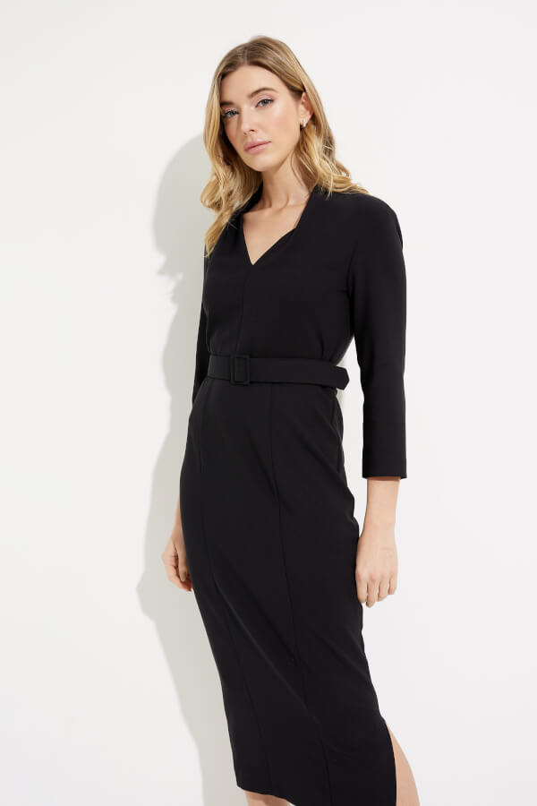 Boasting an elegant, fitted silhouette with striking details like a flattering V-neckline and thin belt, this Joseph Ribkoff dress is ready to take you places. Its midi-length hem gives it a professional feeling, making this the perfect choice to bring to the office.