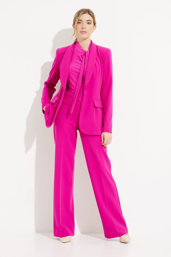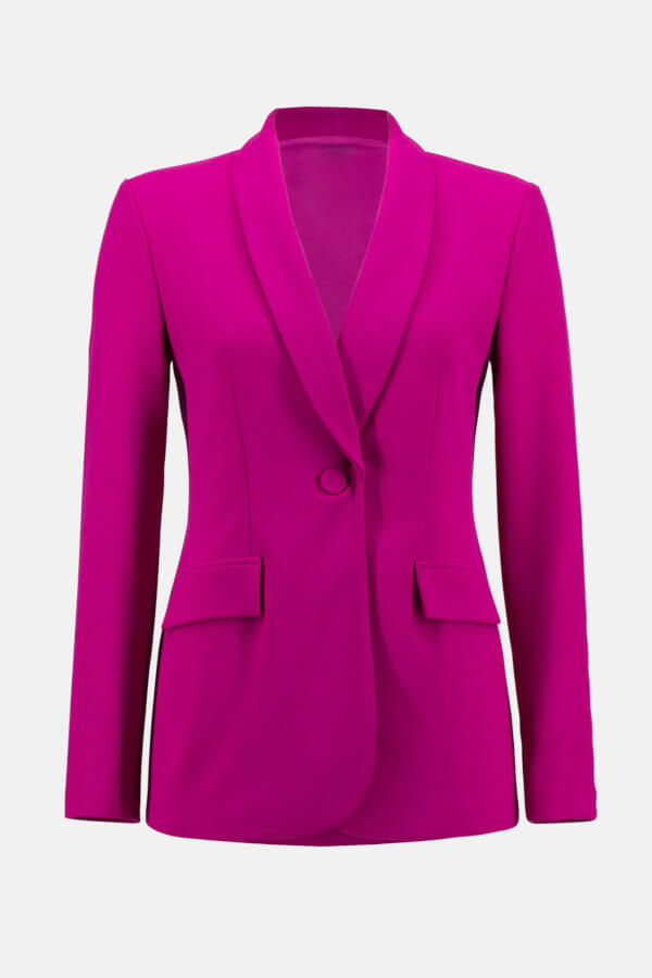 You'll stun in this structured Joseph Ribkoff blazer with its snug, tailored fit, rounded lapels, and lengthy hem. If you're looking for an alternative to a night out dress, this bold style is it. Pair it up with its matching pants for head-to-toe perfection, or break up the look by styling with black or glittery bottoms.