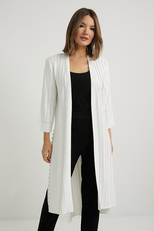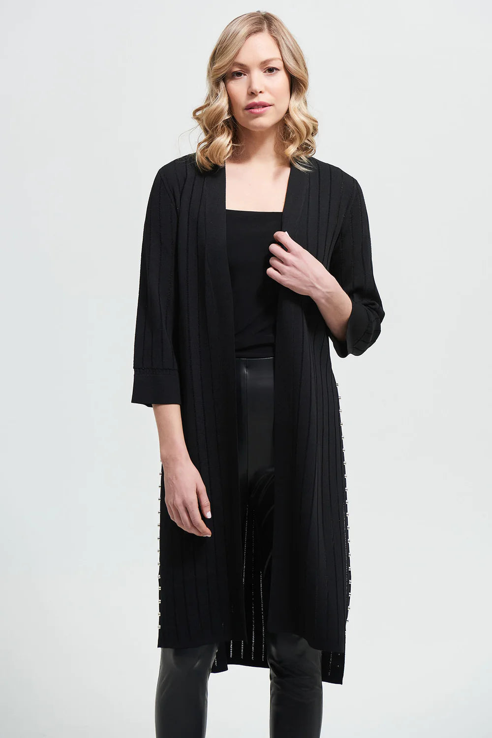 Refined elegance made wearable. This lovely Joseph Ribkoff open front cardigan captures the spirit of the season with its airy, dreamy quality. Spun from an ultra-lightweight, thick rib knit, this beautiful design is easy to drape over a tank top or camisole. This style works both for casual or dressy affairs.