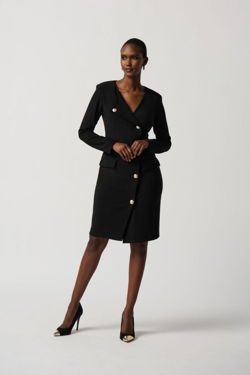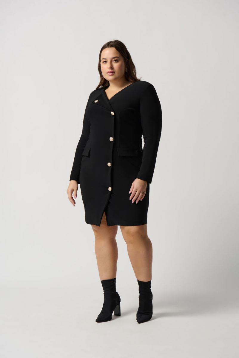 Joseph Ribkoff Black Asymmetrical Silky Knit Blazer Dress Style 234153