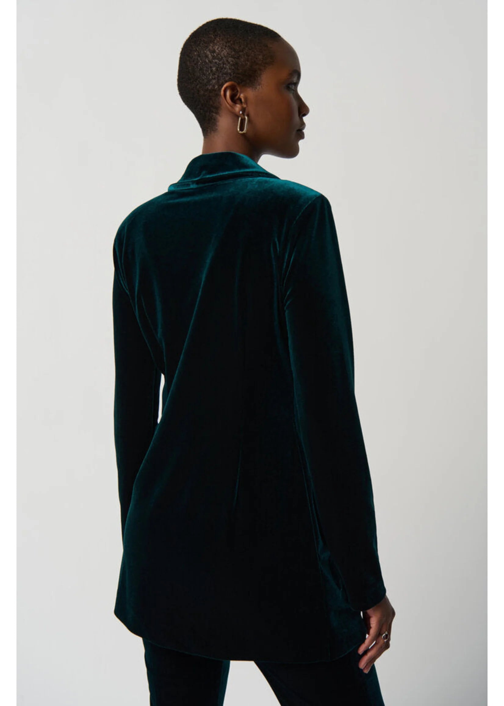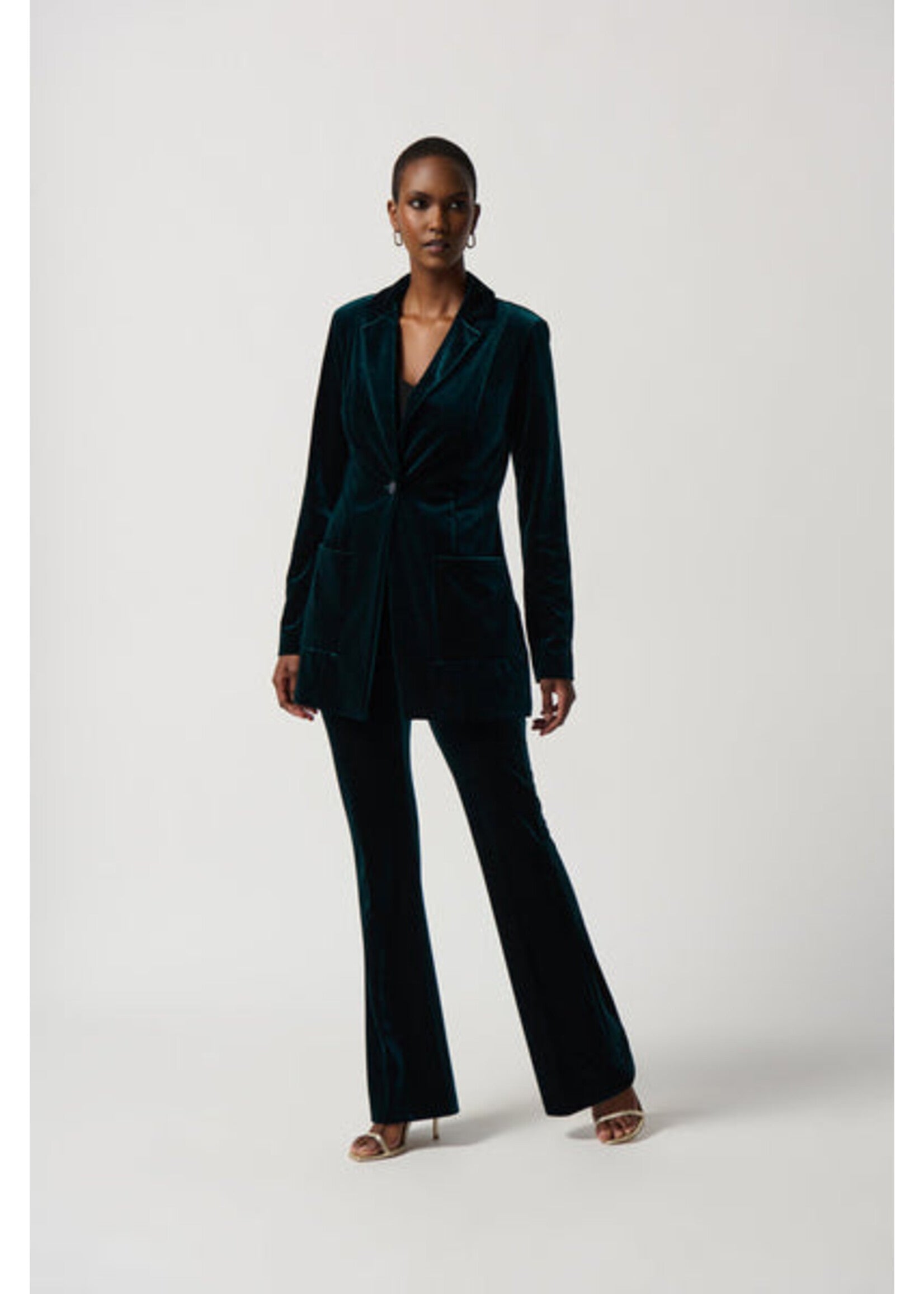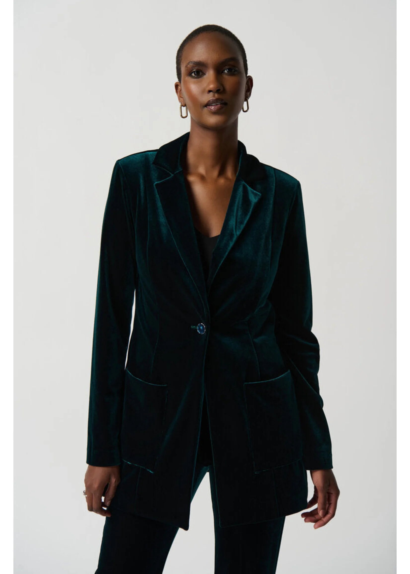 The velvet fabric adds major style points to this otherwise classic blazer. Featuring long sleeves, a lapel collar and shoulder pads for a modern silhouette, this chic blazer with functional pockets will elevate any work attire or happy-hour look.