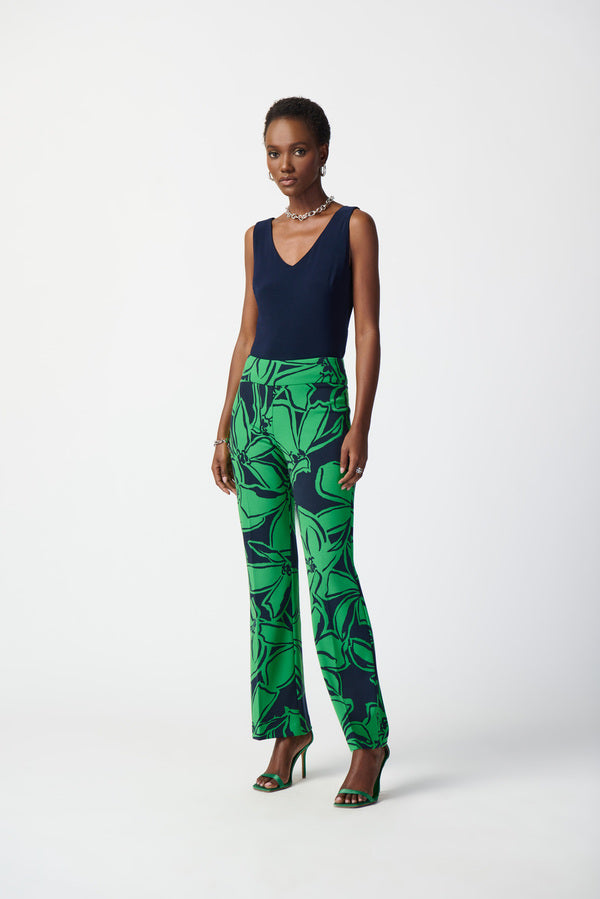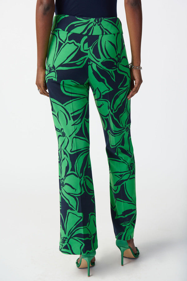 Joseph Ribkoff presents these versatile pants with a straight cut that's further enhanced by distinct pleats on both the front and back of the legs. These pronounced pleats add a touch of elegance to the design. A high, elastic waist ensures the utmost comfort you've been longing for. As a finishing touch, the pants feature fabulous floral designs in two contrasting shades, elevating their style quotient.