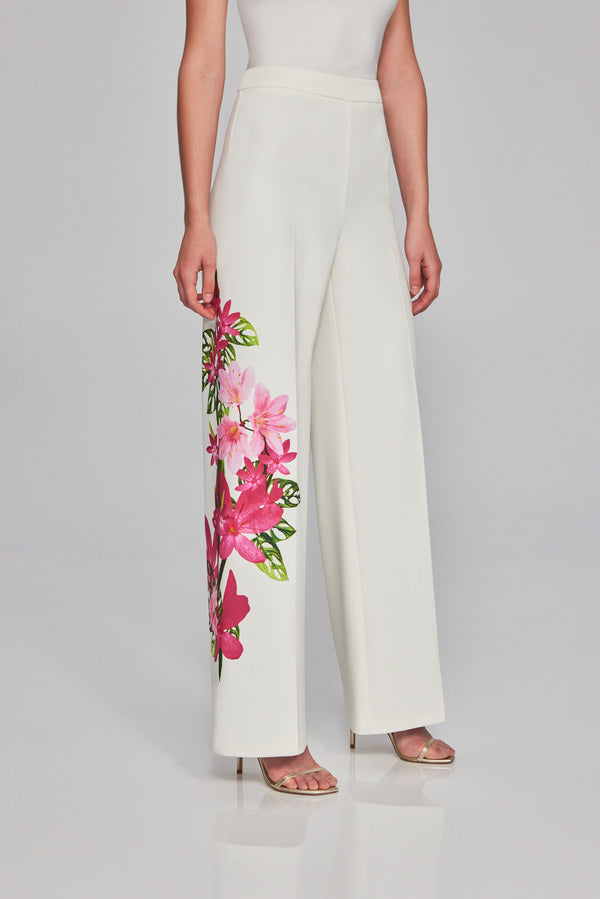 This beautiful pant from Joseph Ribkoff is no ordinary design—on its right leg, you'll find an astonishing floral design starting at the thigh and extending down to the lower calf. With a high-rise fit and wide leg, this polished pair is a delightful addition to your summer wardrobe.