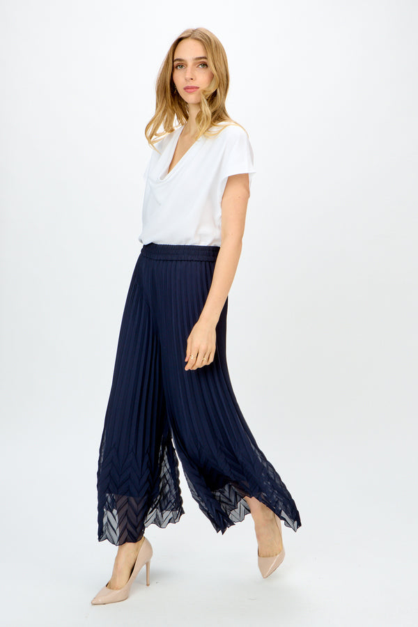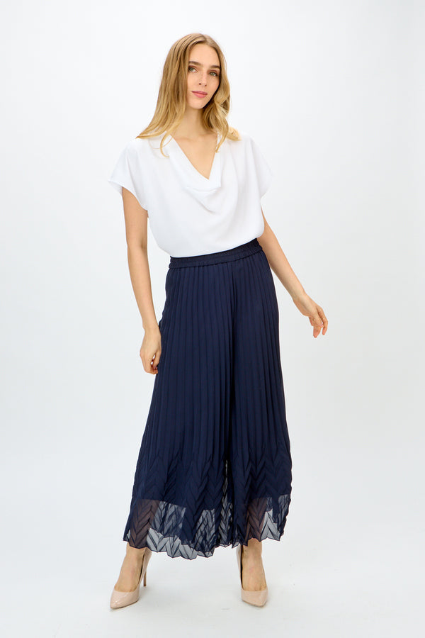 With a stretchy waistband and sheer, chiffon pleated body, this Joseph Ribkoff skirt captures the essence of summer. With its draped fit and a hem that arrives at the ankle, this lightweight style will work perfect for sweltering summer afternoons. Simply tuck in a basic tee or tank and just like that, your outfit is complete!