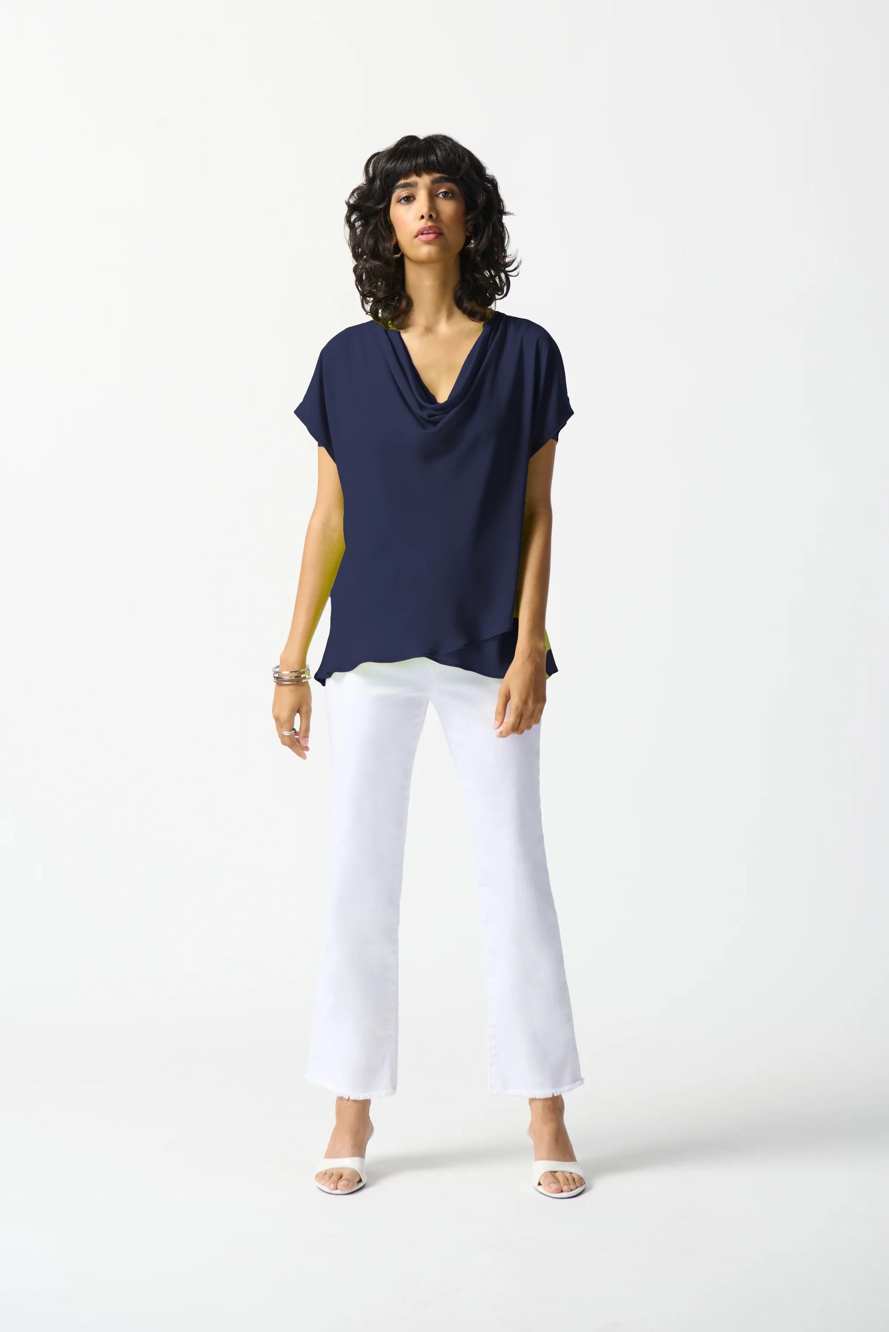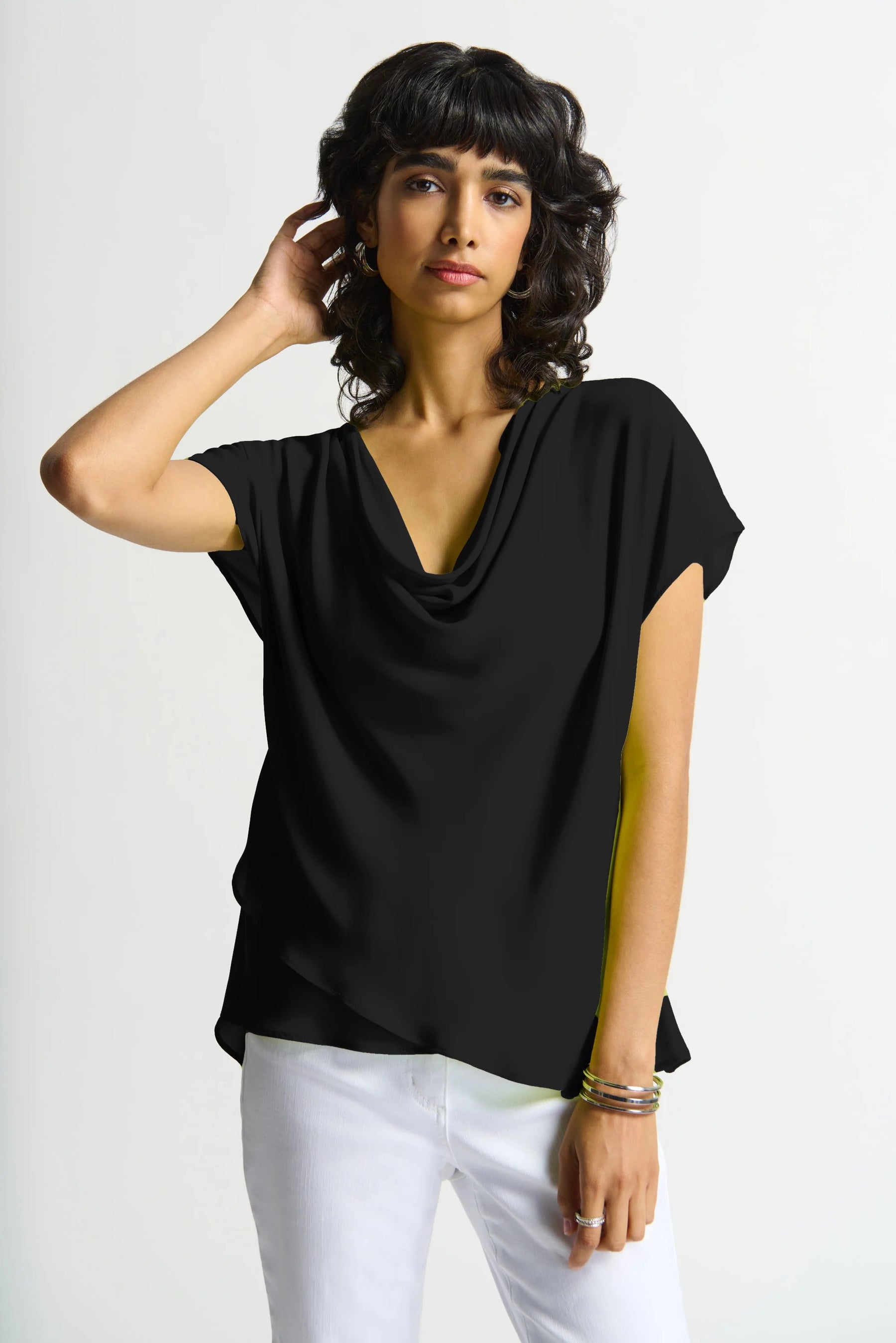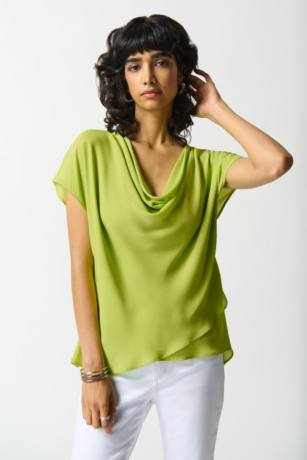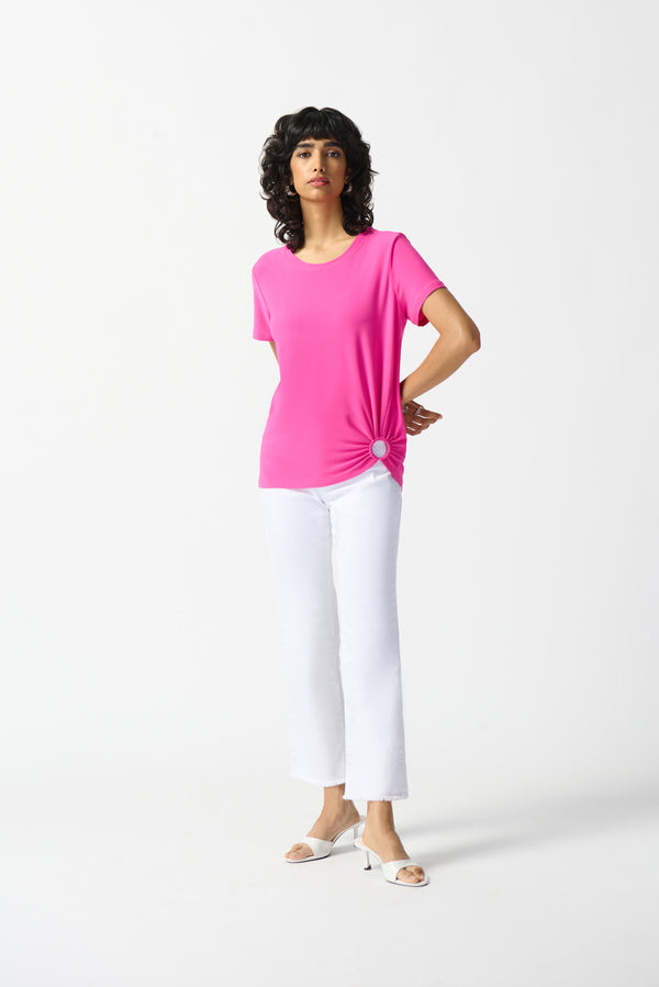 The new essentials. You'll love this bright Joseph Ribkoff top, crafted from a soft jersey fabric in a flowy silhouette. The standout feature of this beautiful top is its ring detail on the side of the hem, a detail that takes it to exciting new heights.