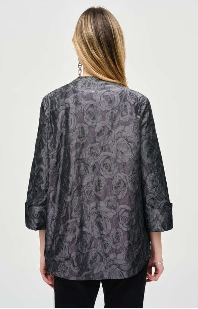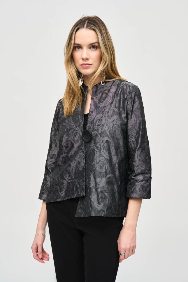 Enjoy a touch of everyday luxury with this short, floral patterned jacket from Joseph Ribkoff. Designed to suit your semi-formal needs, it features a regular fit, straight 3/4 length sleeves and single-breasted button closure. Exuding feminine charm effortlessly, this piece is an exquisite addition to any discerning wardrobe.