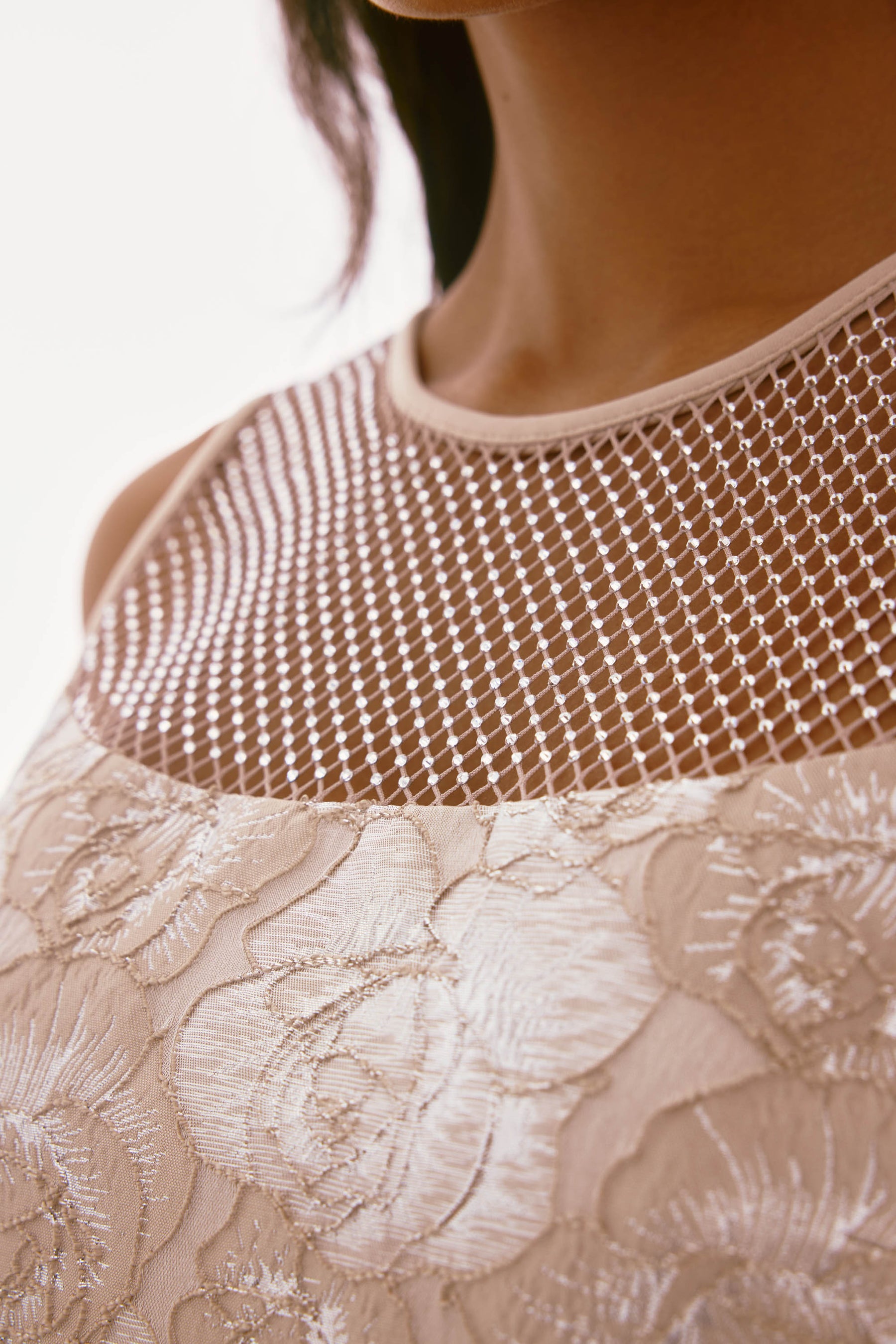Discover the allure of Joseph Ribkoff's knee-length bodycon dress, designed to captivate at any formal event or night out. This feminine piece features a round-neckline adorned with jewel embellishments, mesh detailing, and a stylish slit. The sleeveless, floral-patterned dress effortlessly combines elegance and sophistication, making it a must-have for your wardrobe.