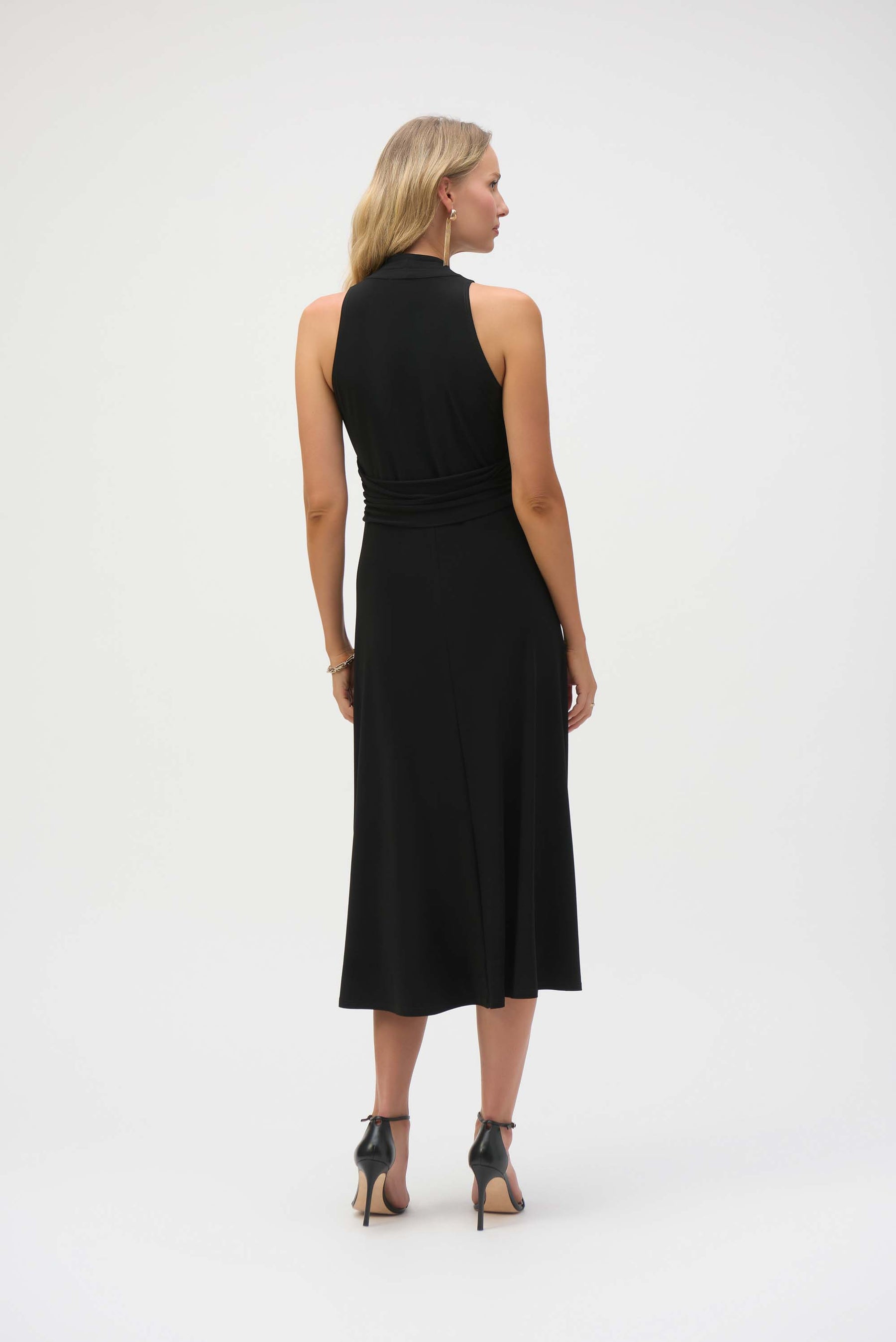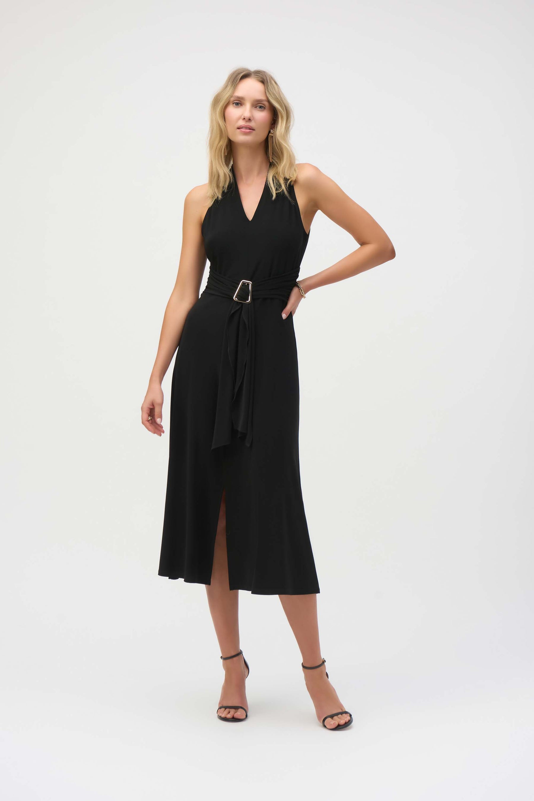 Discover the elegance of Joseph Ribkoff's ankle-length wrap dress, designed for both formal and casual occasions. Featuring a flattering v-neckline and a belted waist, this sleeveless dress embodies a perfect blend of feminine and casual style. Its versatile design ensures a comfortable yet chic look, making it a must-have for any wardrobe.