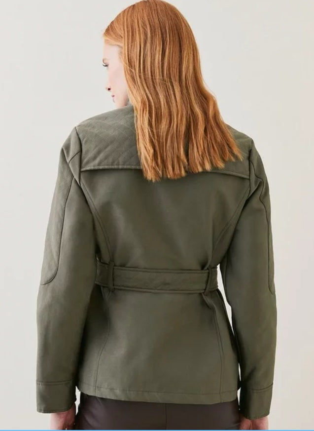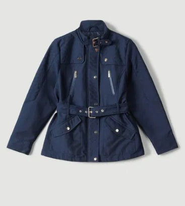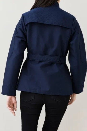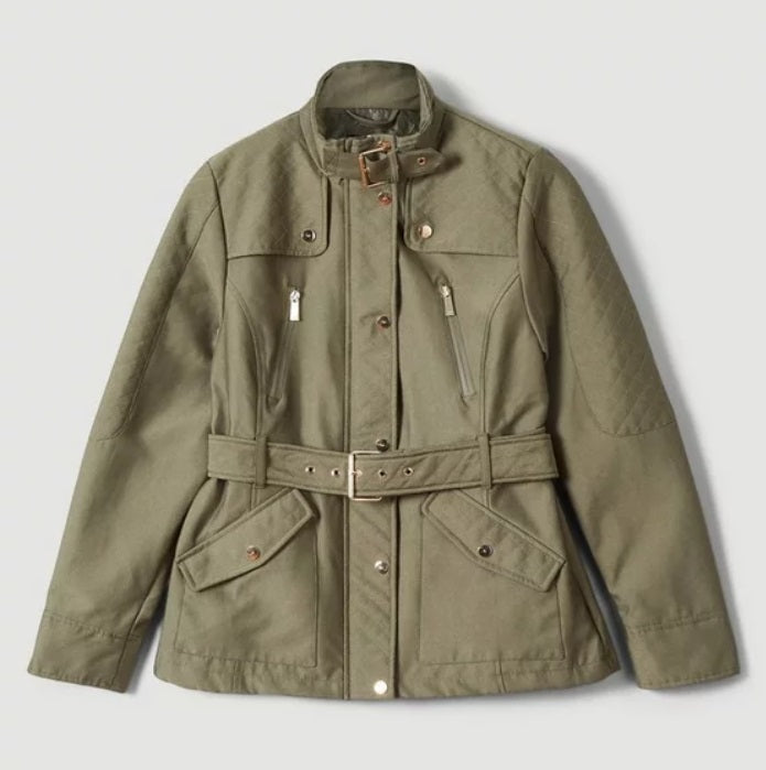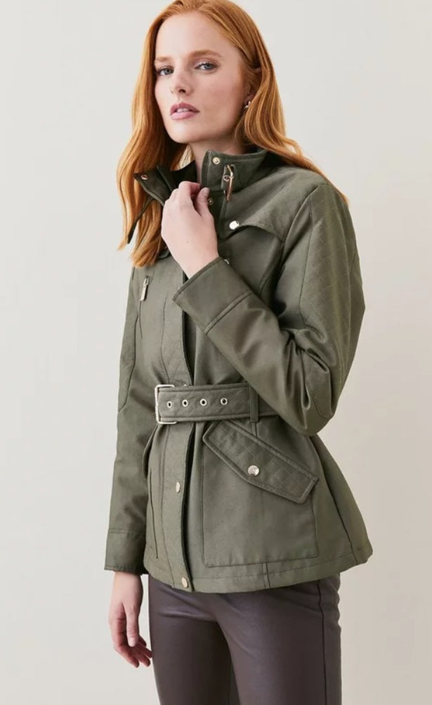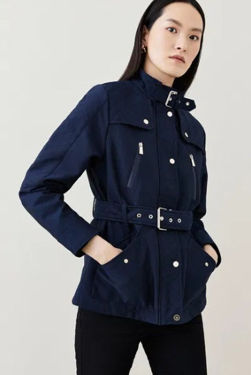 Offering warmth and sophistication, this waterproof jacket is adorned with a sumptuous quilt detail and crafted with premium cotton details for a contemporary mood. Cut to a short length and elevated with a high neck, front placket and buckle belt for a cinched waist. Finished with functional side pockets and polished buttons, this outerwear piece is an elevated choice for trend-forward layering.