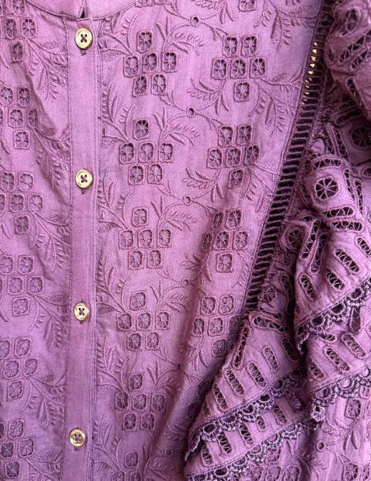 Karen Millen sleeveless cotton broderie Dress, color burgundy