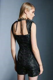 Designed with luxurious snakeskin jacquard and cut for an ultra-flattering fit, this playsuit will elevate any occasion. The split neckline and back tie (with added metalwork detail) gives the piece a feminine feel, while pockets make it a versatile choice for your next after-dark event.