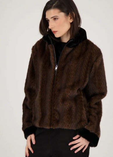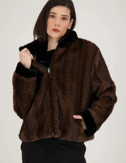 The ultimate jacket of the season, elevate your wardrobe with this Faux Mink Bomber Jacket.
