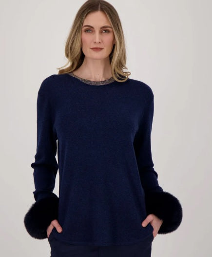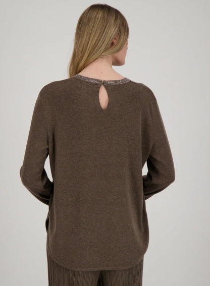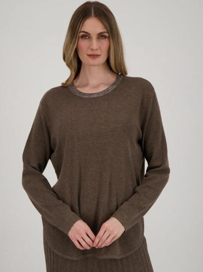 A stunning round neck knit sweater with sparkling glitter neckline, this top is the perfect way to elevate your look. Feel glamorous while staying comfy and cozy!