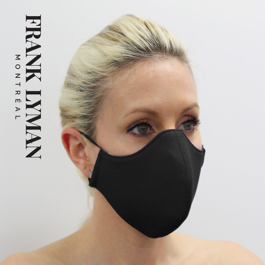 Comfortable double-layered protection. We use two layers of soft and comfortable Polyester/Elastane combination fabrics to create these masks. It fits over your mouth and nose to provide basic protection for daily activities with elastics around the ears to hold the mask in place. Mask made in Montréal, Canada.