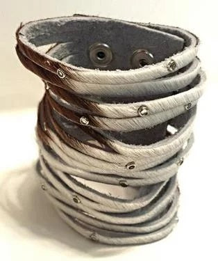 Genuine Cow hide fur and print leather rhinestone embellished 2"fringed cuff