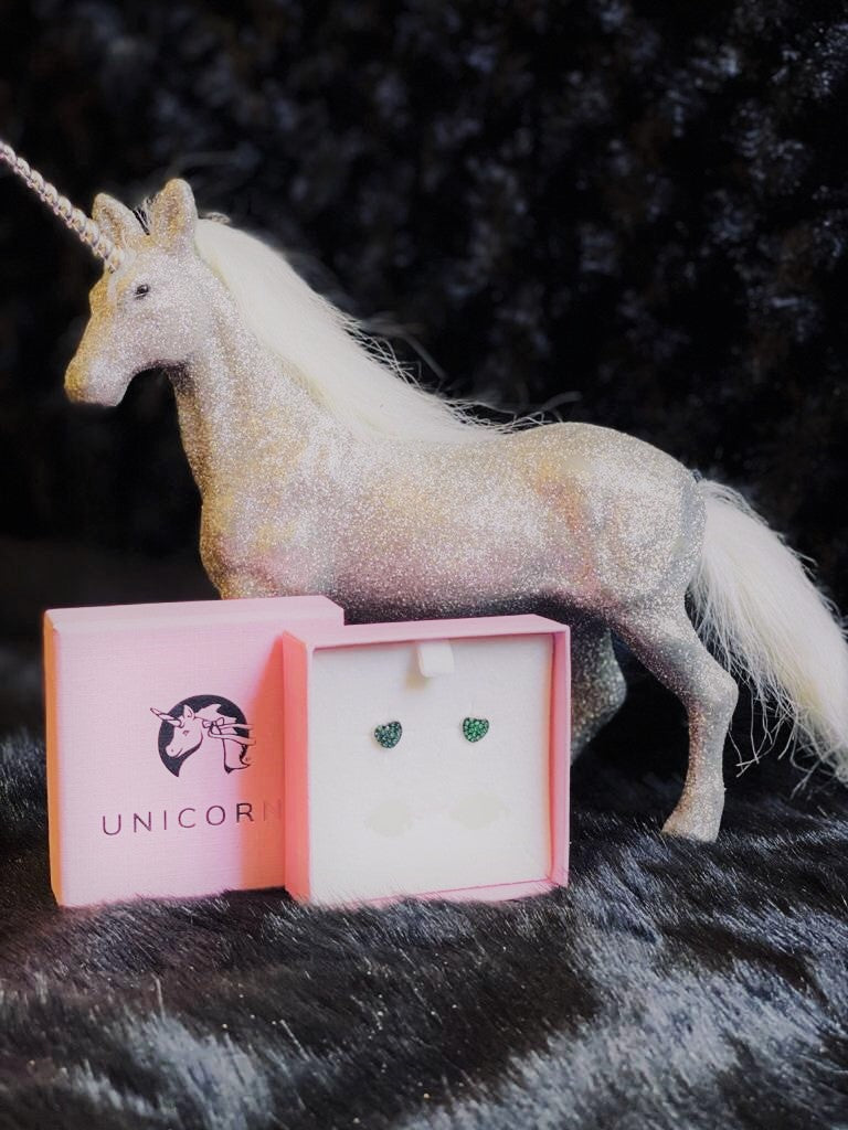 Unicorn J Heart Earrings in Sterling Silver with CZ Pave (UJEP-SOB-SRH)