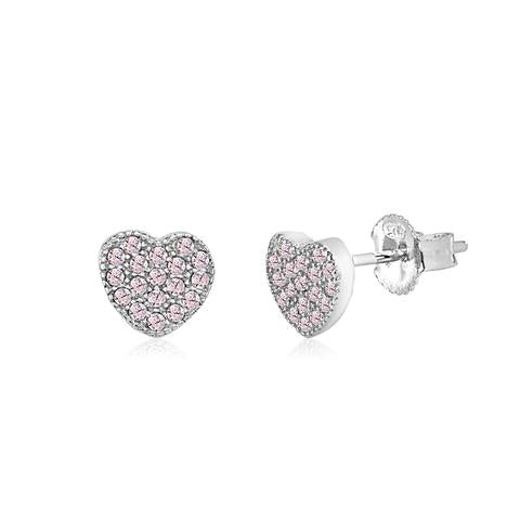 - Cute heart Earrings with pink cz's; Great gift for kids and young girls