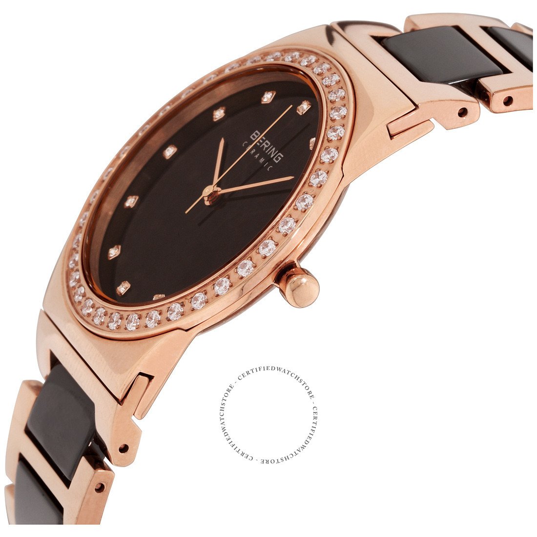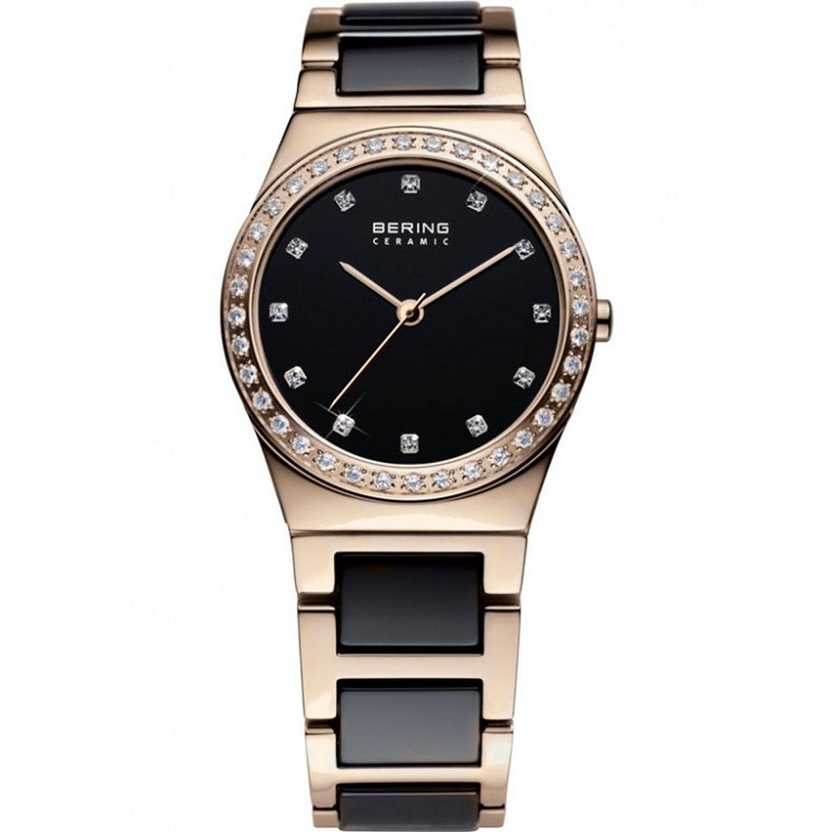 Band Style: Rose Gold Stainless Steel with ceramic links. Swarovski Crystals