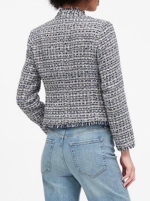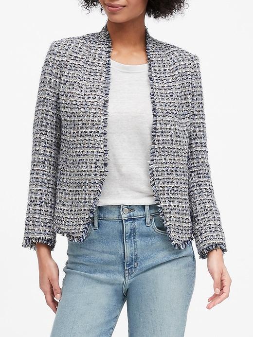 Banana Republic Collarless Metallic Tweed Blazer in Coastal Blue