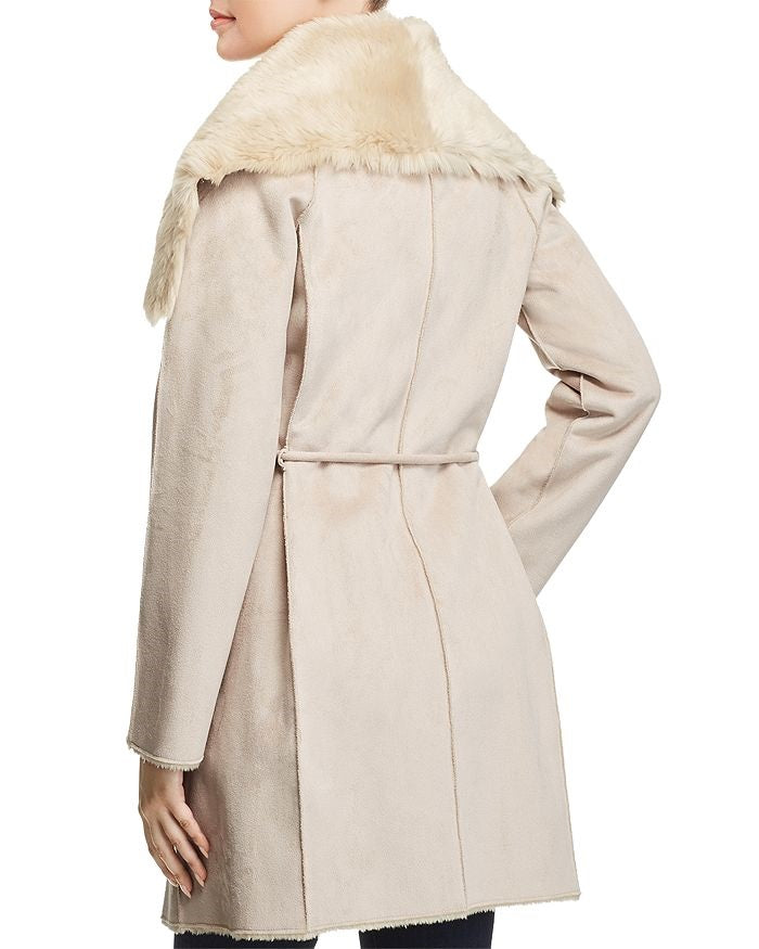 Calvin Klein Womens Faux Shearling Jacket with Faux Fur Collar and Buc