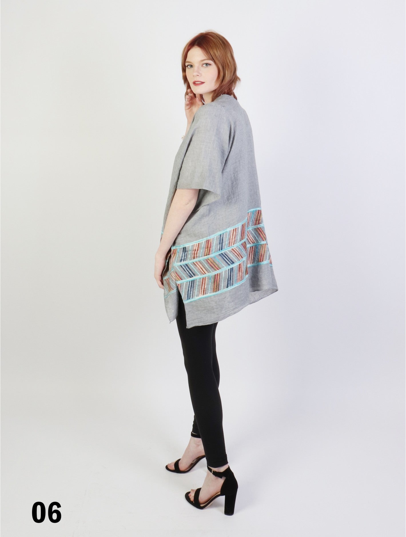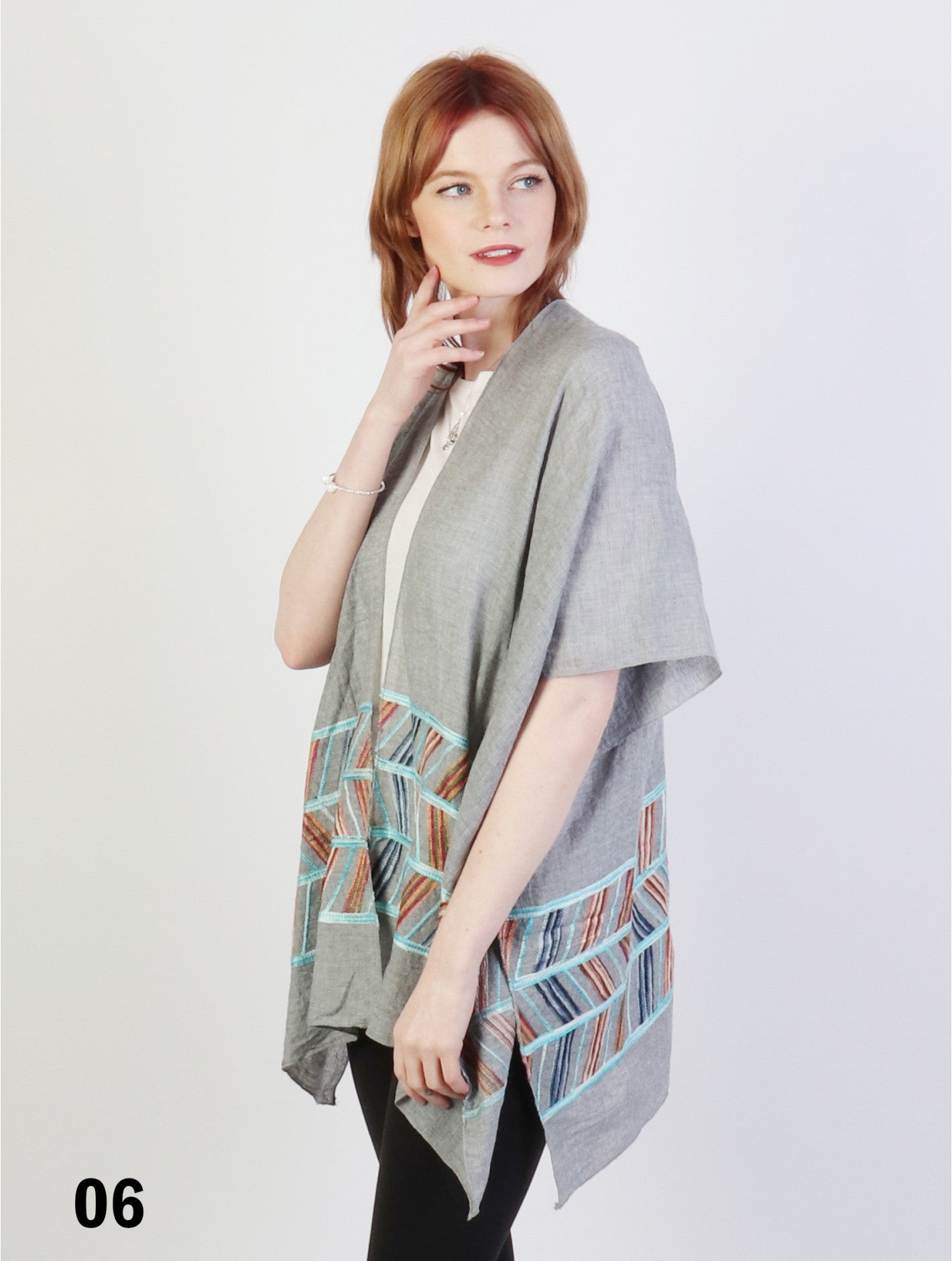 Thin fabric kimono embroidered with a vibrant abstract lineart. Vividly-coloured to add a pop of colour in your closet and great for the spring or summer. Designed with feather-like weight and gentle fabric, making it easy to carry around as a cover-up. Loose fitting and has an open front, perfect for all body types.