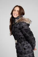 Elevate your parka game with this floral print! Featuring a self-belt to show off your silhouette and a detachable hood with faux fur trim, you'll love this charming winter look.