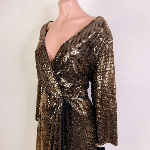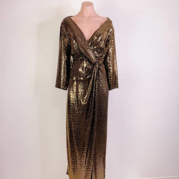 JM STUDIO Gold Metallic Sequin Maxi Wrap Dress