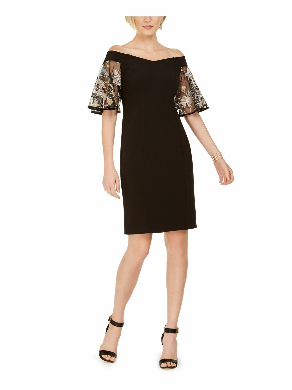 MSK Embroidered Sleeves Short Party Dress – Black