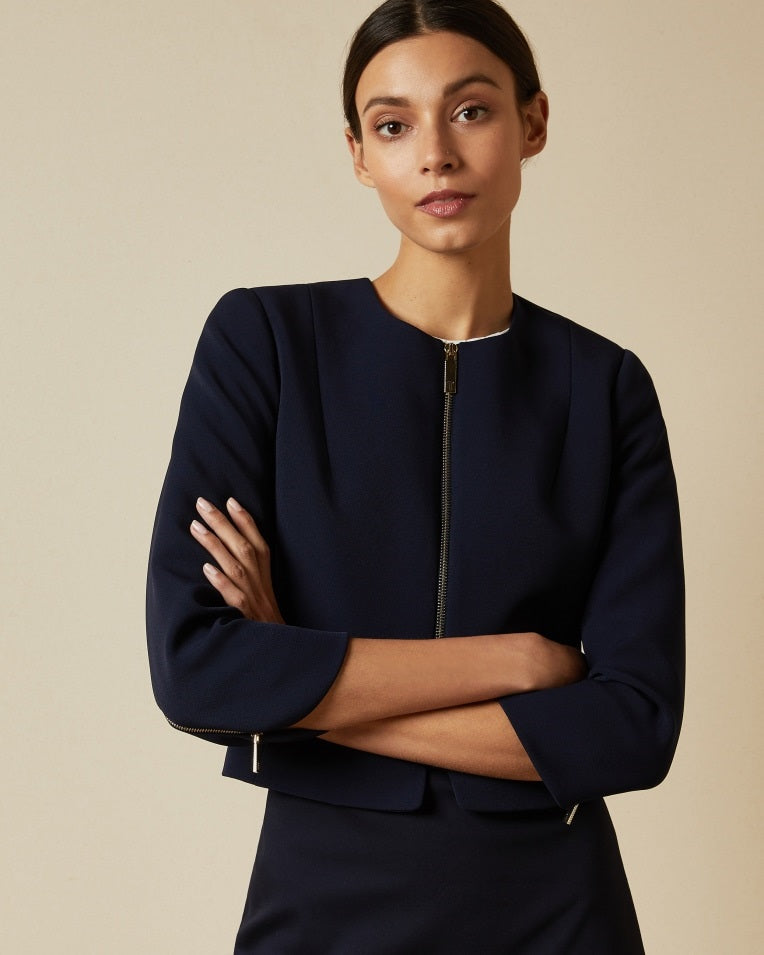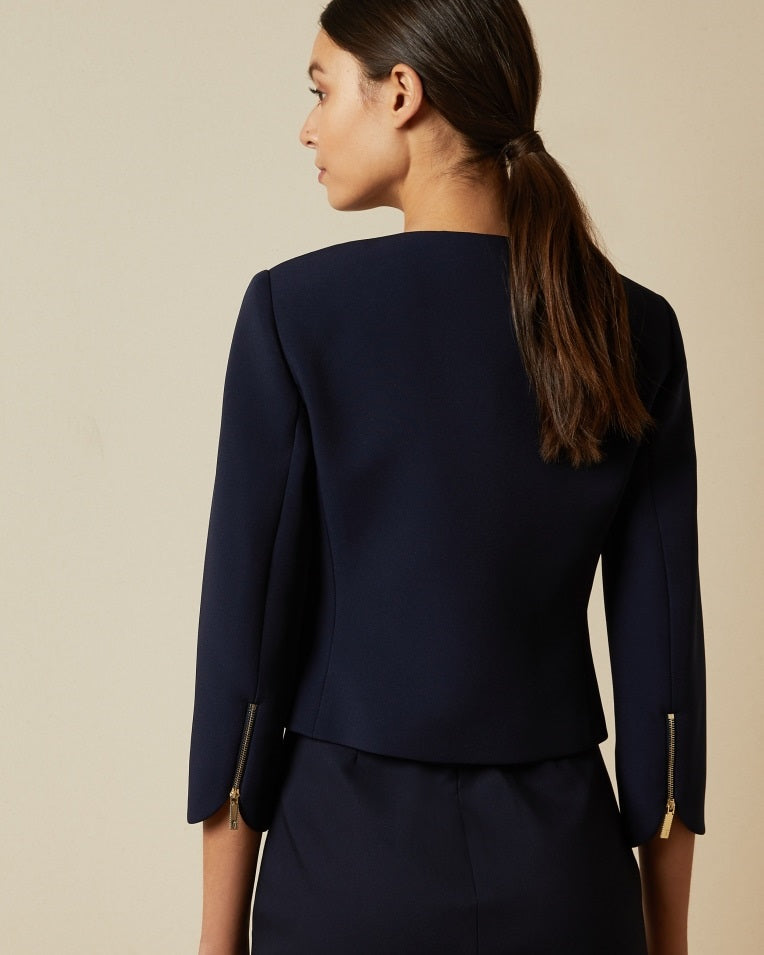 Ted Baker Eliaana Curved Hem Cropped Jacket – Navy Blue