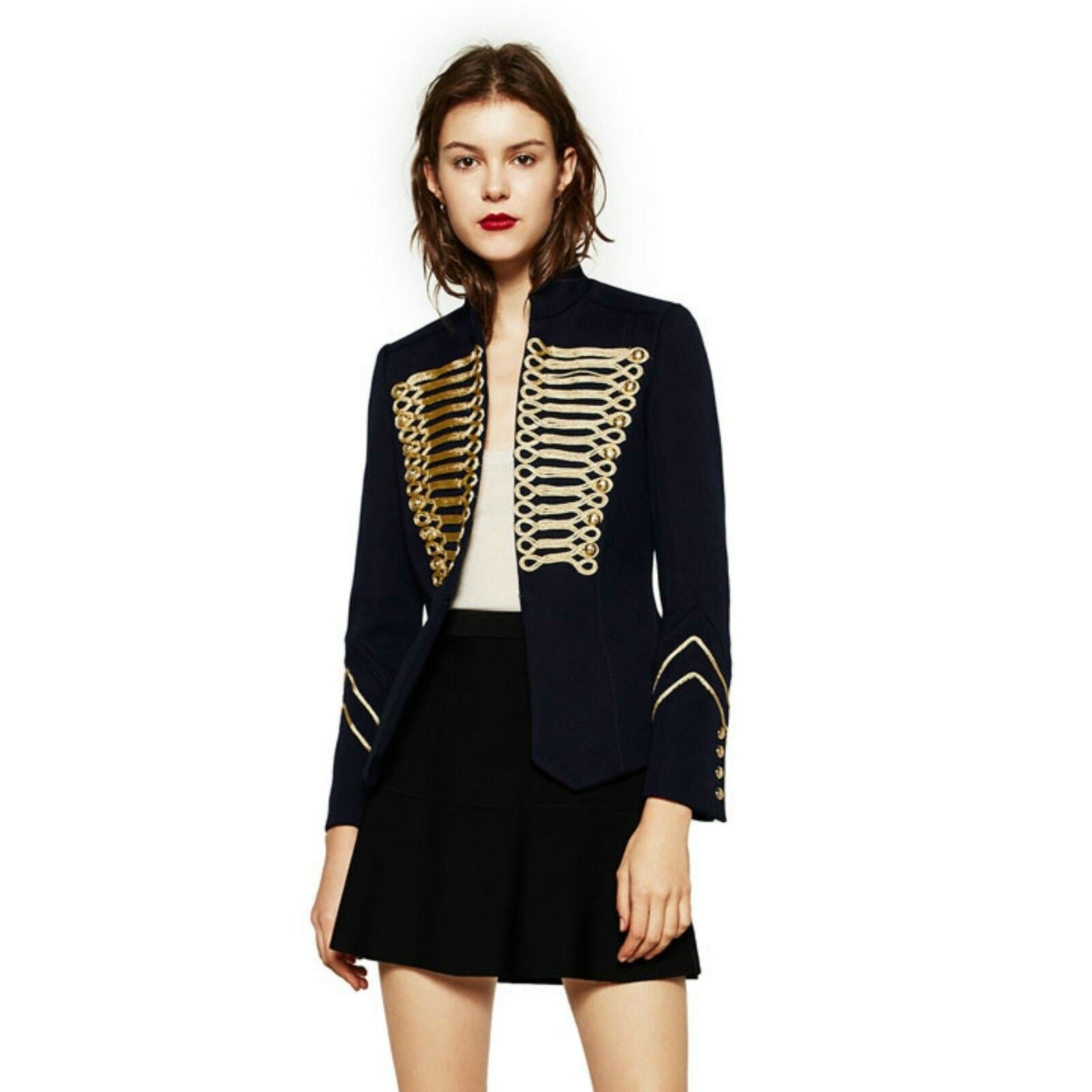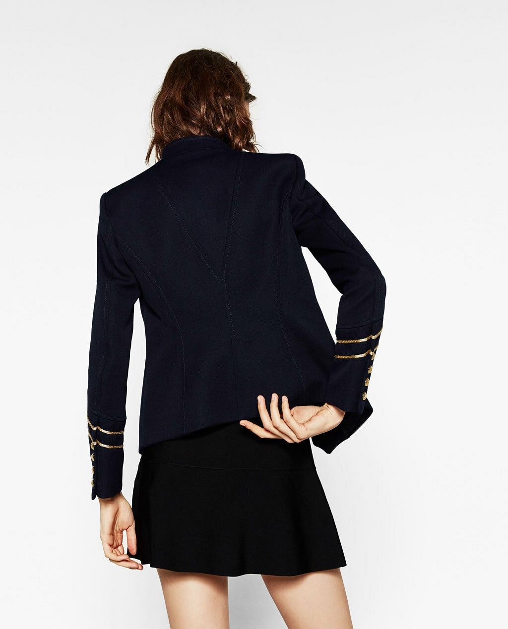 ZARA Navy Blue Military Style Jacket Gold Toggles Authentic Woman