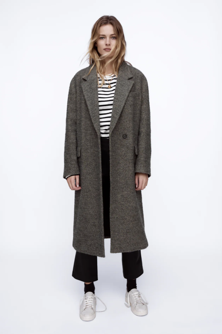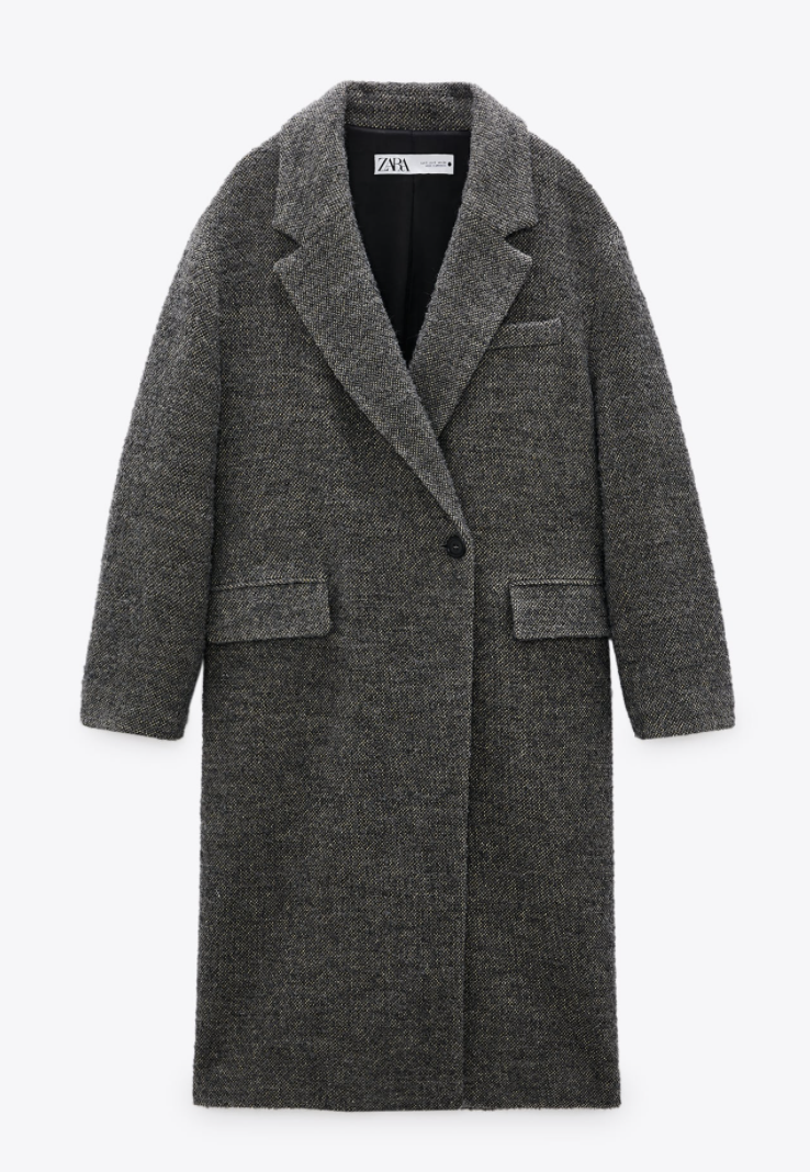 ZARA Wool Blend Oversized Coat Gray Lapel Collar