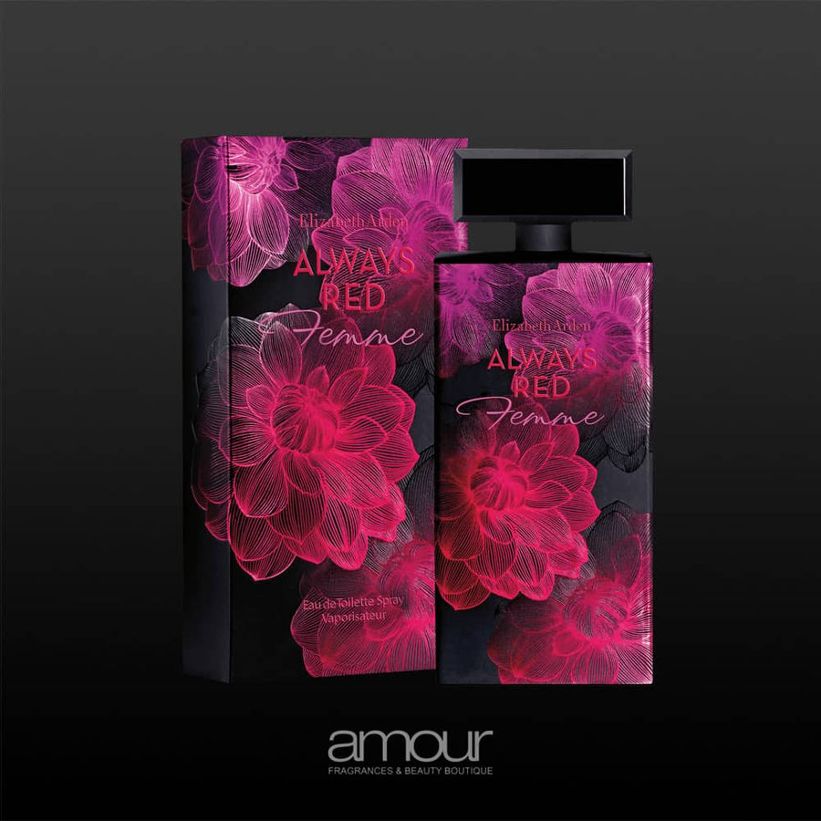 Always Red is a mixture of fresh fruits, delicate florals and warm woody tones. The top notes are pear, cassis and lemon. The middle notes are peach blossom, artemisia, lily of the valley and jasmine. The base notes are patchouli, moss, cedar and vanilla