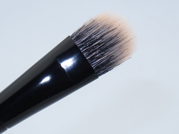 A dense and rounded, medium-sized paddle-shaped brush. Made from a blend of natural and synthetic fibres. The density and flexibility of the bristles helps apply eye shadow with a multitude of effects, from saturated colour to sheer washes.