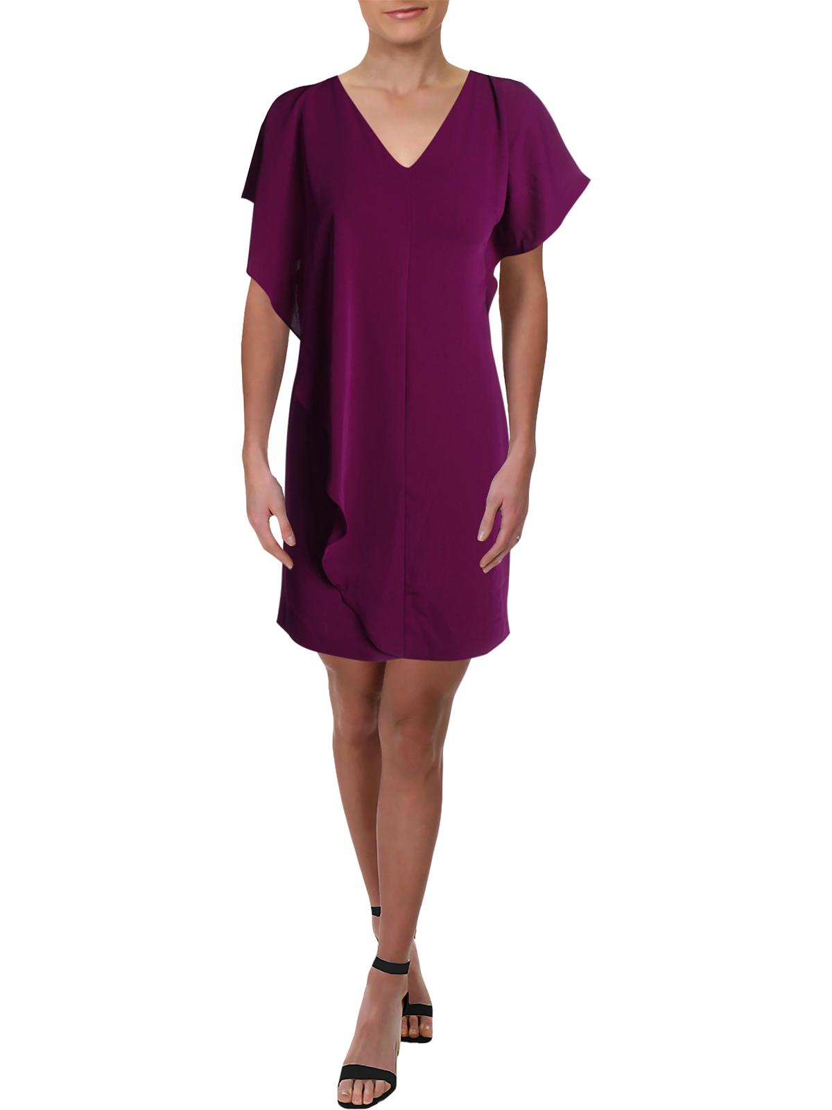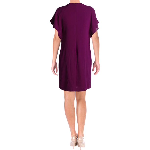 Lauren Ralph Lauren Womens Sazana Ruffled V-Neck Above The Knee Sheath Dress – Purple