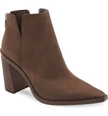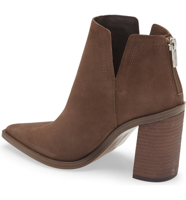 A snipped toe and tapered heel lend a touch of Western-inspired style to a versatile bootie featuring a notched shaft highlighted with tonal topstitching.