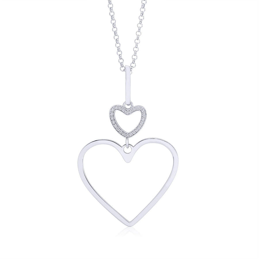 Unicorn J Sterling Silver Polished Large Double Heart Dangle Necklace (UJP-8012-SRH)