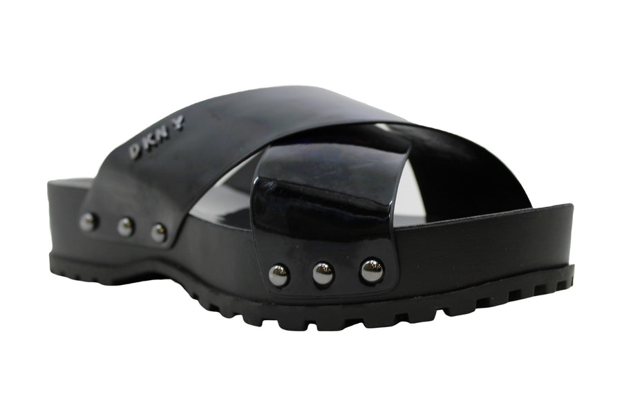 DKNY Wave Open Toe Formal Slide Sandals. Black color