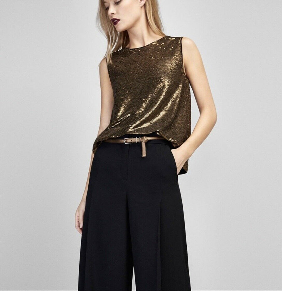 Massimo Dutti Gold Sequined Sleeveless Blouse Top
