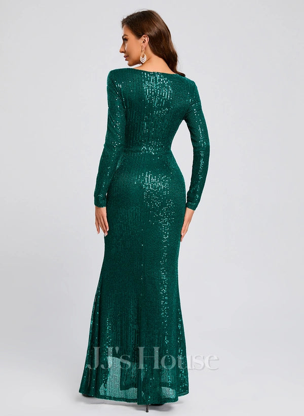 Sheath/Column V-Neck Floor-Length Sequin Prom Dresses With Sequins